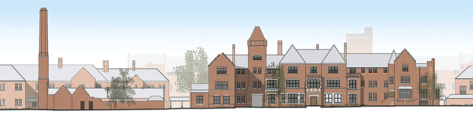 Large sites such as this are often challenging and involve careful consideration of aesthetic, conservation and practical requirements. Divisions have been achieved sensibly and unobtrusively so the site can still be ‘read’: the brickwork has not been over-restored, so retains the patina of age and change; where original covered walkways were no longer viable, the lower parts of the tiled walls have been retained; the shell and chimney of the old boiler house are integral to the scheme. New gas pipes, installed on the facades of the buildings, have been cleverly concealed within dummy rainwater downpipes.